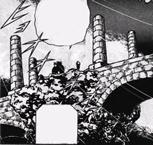 puente está bordeado por simples columnas de piedra en ruinas. Además