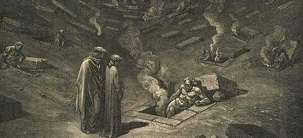 las tumbas, se encuentran también los epicuros. Dante coloca allí
