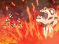 se detiene y cuando las llamas alcanzan la arena, esta se incendia