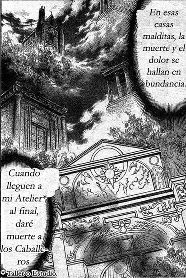 • 9 "Plutón, El Taller de Alone" Aquí Alone encerró gran parte del cosmo de Hades. En este lugar se encuentra el Taller de Alone, donde termina de pintar su obra "El Lienzo Perdido" y donde guarda la pintura con la cual selló el cosmo de Athena. Es aquí donde Aspros de Géminis fusionado con el alma de su hermano Deuteros de Géminis intenta matar a Alone sin lograrlo, interponiéndose el espectro Youma de Mefistófeles, quien aparentemente deshace a Aspros en partículas cuánticas, creyéndolo muerto, pero luego regresa. También aquí Alone asesinó a los últimos espectros que eran leales a Hades y no a él; revelando logró retener el alma de Hades en su cuerpo para poder dirigir a los espectros sin la intervención de los dioses Thanatos e Hypnos. Tambiés es escenario de la batalla entre Radamanthys de Wyvern y Alone para salvar a Pandora y buscar despertar al verdadero Hades, Radamanthys muere protegiendo a Pandora, que quería eliminar a Alone, pero logra romper la dimensión con un golpe para destruir el cuadro que sellaba el cosmo de Athena. Es también en este lugar donde ocurre la batalla final entre el alma de Hades contra Tenma, Sasha y Alone; batalla que dio como resultado que el alma de Hades fuera sellada y las muertes de Tenma, Sasha y Alone, dando fin a la guerra santa del siglo XVIII. El