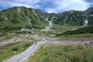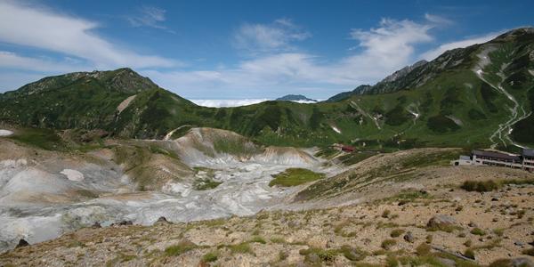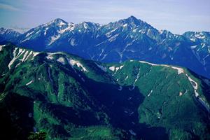 Los Alpes japoneses es un sistema montañoso de Japón formado por tres cadenas que recorren de norte a sur la isla de Honshu, la mayor del país. Estas cadenas son los montes Hida, o Alpes septentrionales, en las prefecturas de Niigata, Toyama (donde está el Monte Tateyama o Monte Tate), Nagano y Gifu; los montes Kiso, o Alpes centrales, en la prefectura de Nagano; y los montes Akaishi, o Alpes meridionales, en las prefecturas de Nagano, Shizuoka y Yamanashi. Estas cadenas están constituidas mayoritariamente por rocas ígneas y metamórficas, especialmente granito. Los vientos procedentes del mar del Japón provocan un gran número de precipitaciones anuales en forma de nieve, de las más elevadas del mundo, sobre todo en la vertiente norte del sistema montañoso. La disposición de las montañas Hida (o cordillera Hida) tiene una gran forma de "Y". Los picos del sur son la porción más baja de la forma "Y", con los picos del norte formando dos bandas paralelas separadas por un profundo valle en forma de V, donde fluye el Rio Kurobe. Es uno de los valles más pronunciada en forma de V en Japón. El brazo occidental de las montañas está dominado por el Monte Tsurugi y Monte Tateyama (tambien suele definirse a este brazo como Cordillera Tateyama), mientras que el brazo del este está dominado por el monte Shirouma y el Kashimayari.