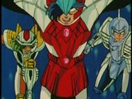 de la armadura celeste Los Santos de Acero fueron agregados en la historia por la compañía juguetera Bandai, que quería vender figuras de su efigie, apoyándose en su diseño robótico ya que en esa época en Japón los mechas o robots transformables eran especialmente populares entre los jóvenes.