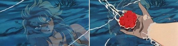 ¿Por qué sus ataques se basan en rosas mortíferas?. Se nos ocurren dos razones. Por una parte se trata de un pequeño guiño / homenaje a la célebre teleserie de anime Lady Oscar (Versailles No Bara en japonés, literalmente: la "rosa de Versalles"). En la que aparece un personaje con una rosa que se asemeja gráficamente bastante a Aphrodite. Más información de la serie en la sección ARAKI. Globalmente Aphrodite es un pequeño guiño / homenaje a los mangas de tipo Shojo (destinados a un público femenino), en los que se feminiza a los personajes que a menudo se presentan un poco andrógenos o fuertemente feminizados. Pero por otro lado, hay seguramente más un vínculo mitológico con la diosa del mismo nombre. Los rosales en la Grecia antigua, se asociaban a Aphrodite. Según la leyenda, la rosa era blanca de origen, pero un día fue herido Adonis, el protegido de Aphrodite, y murió, la diosa al correr hacia él pisó una rosa, se pinchó con una espina, y su sangre se extendió dando a las rosas el color rojo. Desde entonces esta flor se le consagra. Simboliza la vida, el corazón, el alma y el amor. Corresponde un poco al loto en Asia. No cabe duda de que Kurumada hace referencia a todo esto, como para el loto con Shaka y Agora. Tengan en cuenta una vez más la sutileza de Kurumada en lo que se refiere al nombre y a las propiedades del ataque de las rosas pirañas puesto que he aquí un ataque vinculado a Aphrodite y a los peces, y.. una vez más todo tiene un sentido.