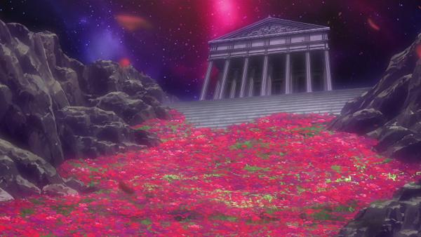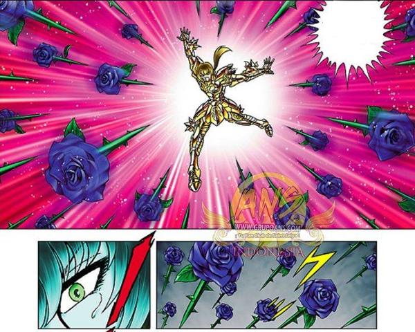 La Bloody Rose de Afrodita vuela a través del Nebula Stream de Shun y lo alcanza, pero, sin embargo, son rechazadas por la Starlight Extinction de Mu en la saga de Hades.