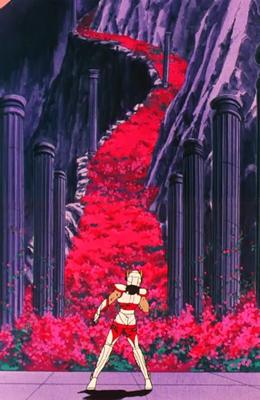 A pesar de su aspecto inofensivo las Royal Demon Roses (Rosas Diabólicas o del demonio según la traducción que se tome) se pueden utilizar como trampa en gran número para crear un campo o tapiz completo de rosas rojas tóxicas. El lecho de rosas que utilizó para bloquear el camino a Seiya entre el Templo de Piscis y el Habitáculo del Pope, consiste en crear una especie de jardín de rosas rojas con perfume somnoliento que cubre el suelo en un centenar de metros. Su objetivo es evitar que cualquier invasor perpetúe el lugar donde están Atenea y el Sumo Pontífice. A priori nadie puede cruzar este obstáculo ya que las rosas rojas tienen como efecto dormir el adversario y hundirlo en una muerte suave... Es decir, el sendero que comunica el último Templo con el Pope está cubierto por un jardín de rosas que es imposible su paso. Este lugar recibe le apodo de “La progresión fúnebre de las rosas”. Durante la Batalla en los Doce Templos, Seiya logró destruir ese jardín gracias a la ayuda de Marin. Akai Bara. 赤いばら (あかいばら) (Akai Bara) “Rosa Roja”. Se dice que en el trayecto entre Piscis y el Salón del Pope se encuentra un jardín de rosas rojas. Llamadas también Demon Rose “Rosas del Demonio” o “Rosas Diabólicas”. No pueden ser tocadas ya que su polen y sus espinas contienen un veneno letal. El Saint de Piscis construye un jardín de rosas diabólicas reales (rosas venenosas rojas) cuyos vapores pueden eliminar enemigos sin mover un dedo. Desde que el templo de Piscis es el último obstáculo antes de llegar al templo del Pontífice, el Saint de Piscis tejió una alfombra de rosas rojas en las escaleras que conducen a las cámaras del Pontífice, convirtiéndose en una zona de amortiguamiento mortal. En el manga precuela The Lost Canvas da la impresión que Albafica de Piscis puede hacer florecer este jardín en cualquier lugar que le plazca, ya que Albafica se topa con las tropas invasoras de Specters en medio de un jardín antes incluso de que estos lleguen al templo de Aries.