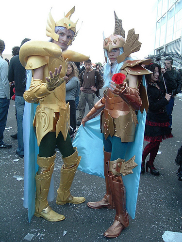 La androginia y Japón La palabra androginia viene del griego y se refiere a un organismo que tiene características tanto femeninas como masculinas. Dicho esto, los personajes andróginos son aquellos personajes que poseen rasgos intermedios que impiden que se los pueda clasificar como hombres o mujeres, habiendo casos en los que una mujer es confundida con un hombre y viceversa. El que hizo parecer afeminados a Shun y a Aphrodite fue el anime, no Kurumada, aunque se parecen bastante al diseño del manga, en el anime les añadieron detalles femeninos para que parecieran andróginos según los cánones de belleza en la cultura japonesa. En su manga clásico Kurumada los creó como personajes bishōnen, bonitos, sí, pero masculinos... son simplemente hombres bonitos según la estética manga. De todos modos, no debemos olvidar que Camus tiene uñas largas y de color en el manga... y también Deathtoll. En Japón el concepto estándar de belleza incluye a un hombre con rasgos femeninos, es exactamente el aspecto de Afrodita y Misty, siendo los occidentales quienes malinterpretamos el concepto. Saint Seiya no es el único manga donde la ambigüedad sexual prevalece en algunos personajes. Este fenómeno es relativamente común en los mangas y más generalmente en la cultura japonesa. Históricamente, la androginia parece obsesionar a los japoneses. Podemos ver varias razones a este fenómeno, una de ellas, probablemente, viene de la tradición del teatro Kabuki, teatro japonés aparecido en el siglo XVII, y donde tradicionalmente sólo los hombres tenían el derecho de ser actores y, por lo tanto, eran ellos los que asumían los roles femeninos y debían vestirse en consecuencia!. El papel femenino siempre está representado por un hombre, ya que “es más artificial y por lo tanto más bello”. Por contra, en el teatro de Kobayashi Ichizo (1914) son las mujeres las que interpretan papeles tanto femeninos como masculinos, para representar a los hombres, se basan en estereotipos varoniles de la pantalla grande Entre otras fuentes remotas de esta atracción a la androginia también se podría citar a la época de los samuráis. Existía una sub-casta conocida como kabuki-mono, integrada por ronins o samuráis sin maestro) que no seguían los preceptos del bushido (el camino del guerrero), y que se vestían de forma muy excéntrica con un aspecto andrógino. Algunas películas los pusieron en el punto de mira de forma bastante recurrente. Nota: un rōnin (浪人), literalmente "hombre vagabundo", era un hombre errante como una ola en el mar, un samurái sin amo durante el período feudal de Japón, entre 1185 y 1868. Un samurái podía no tener amo debido a la ruina o la caída de éste, o a que había perdido su favor. En Japón, los chicos considerados guapos, ya sean famosos, modelos, actores, cantantes etc. suelen tener facciones bastante afeminadas, lo que demuestra una vez más los distintos ideales de belleza orientales/occidentales… Lo que se quiere enfatizar con este cambio de géneros es la belleza, llevar al máximo el placer estético. Pero es el artificio, el simulacro y su ambigüedad lo que acrecienta la belleza del personaje. Tanto en el Manga como en el Anime encontramos personajes masculinos estilizados, los cuales se cargan de una belleza femenina que los torna andróginos. Su halo de misterio se enfatiza por la indefinición. Pero, además de estos personajes de sexo ambiguo, las sagas están plagadas de figuras donde los jóvenes se disfrazan de mujer, y las jóvenes de varón. Muchas veces, así como los hombres rozan lo femenino, con sus largos cabellos, sus cuerpos feminizados, sus finos rostros; los personajes femeninos, en especial “las malas” o “las guerreras”, son mujeres con fuertes características femeninas, como grandes pechos, estrechas cinturas y amplias caderas, pero que se muestran muchas veces dominantes, activas, con conductas asignadas normalmente como masculinas.