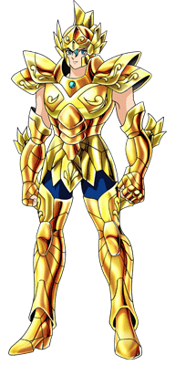 Los protectores de los bíceps son una banda circular plana, más o menos de una altura que alcanza la mitad del músculo bíceps en el exterior. Giran alrededor del brazo como una venda, acoplándose a los brazaletes en el codo. El borde inferior interno tiene una serie de juntas en anillo para permitir que el Gold Saint doble completamente el brazo. El metal de la parte interior del codo parece más delgado, o al menos flexible, mientras que la parte exterior está cubierta por las estribaciones de los brazaletes. Son dorados, aunque de color más claro en el borde superior. Los brazaletes son casi cilíndricos, protegen la mano, la muñeca y el antebrazo, pasando de los dedos de la mano hasta el codo. La parte que cubre la mano es rígida en el dorso y flexible en la palma, en correspondencia con las distintas articulaciones de los dedos, a fin de permitir apretar el puño. Los nudillos están reforzados. Otro conjunto se encuentra en la muñeca, y permite articularla correctamente. La presencia de estas uniones sugiere que en algunos lugares, la armadura tiene un poco de metal extra extensible. Cubren igualmente la parte posterior y el vientre del brazo, superponiéndose a los protectores de los bíceps. Su característica especial es una aleta triple situada justo debajo del codo, perpendicular al resto y formada por una escama central pentagonal y dos escamas laterales más curvas. Esta decoración retoma el estilo de las aletas de los costados del casco, aunque estas son mucho más pequeñas y delgadas. Una imagen de primer plano muestra que, siendo parte de los brazaletes, también se pueden doblar para cubrir la protección del bíceps cuando el brazo se dobla. Siendo cortantes y puntiagudas también podría servir como armas, pero su propósito es sólo decorativo. Los brazaletes son más anchos en correspondencia con los músculos del antebrazo y atravesados por estrías, pero sin adornos. La aleta es de un tono dorado más claro, pero el resto es completamente naranja. Las rodilleras se parecen vagamente a las de la cloth V1 de Andrómeda, pero también cubren en igual medida el exterior y el interior de los muslos, dejando ligeramente menos cubierta la parte frontal debido a un borde superior en forma de V. El resto de la pieza es cilíndrica y rodea la base del muslo en una forma bastante uniforme en los cuatro lados, y luego se ajusta a la protección de la rótula que forma parte de las espinilleras. La parte posterior de la rodilla está cubierta de metal delgado y flexible para permitir que el Gold Saint pueda doblar la pierna por completo. Parecen estar formadas por dos capas semi-cilíndricas apiladas a lo largo del eje vertical, con el externo ligeramente más masivo y cubriente. Parten de la rodilla y suben hasta su punto más alto, casi en la pelvis, tocando las puntas de los bordes laterales del cinturón. En la tercera película y en los diversos artbooks y productos que los acompañan en el exterior, en el lado exterior de las rodilleras se aprecia una aleta triple, similar a la de los brazaletes pero de mayor tamaño, perpendicular y en ángulo ligeramente hacia atrás. Aunque está presente en los Settei, esta aleta no aparece en ninguno de los tres episodios ambientados en la duodécima casa. Las rodilleras son de color naranja, con la aleta y el borde exterior y algunos adornos de oro similares a los de pectoral y la protección de la espalda. La pieza entera está atravesada por varias bandas, que continúan hasta que se funden con las espinilleras. Las espinilleras cubren toda la pierna, desde los dedos hasta la rodilla, ya sea por delante como por detrás. El mismo pie también está cubierto bajo la planta, el tobillo y el talón. Alargadas en correspondencia con la pantorrilla, las espinilleras se superponen en el borde superior a la rodilla delantera. Se aprecian decoraciones en los laterales que hacen hincapié en la forma de los músculos de la pierna, mientras que en el tobillo hay articulaciones, que probablemente unen la protección de la pierna a la del pie y permiten que el Gold Saint se mueva libremente. El calzado también se desliza dentro del resto de la espinillera, casi como una bota. En la rótula hay una protección hexagonal para la rodilla, particularmente reforzada y de varios centímetros de espesor. El borde inferior se desliza bajo el resto de las espinilleras, y en la parte de atrás sobresalen las láminas metálicas más delgadas que cubren la parte posterior de la articulación. La protección para el pie no es adherente, pero forma un zapato real, con un tacón bajo el talón. Están cubiertas con adornos y decoraciones que reprenden los motivos ya vistos en las rodilleras. Al igual que el resto de la armadura son de oro y tienden a naranja. Piezas especiales / Poderes Al igual que todas las armaduras de oro, la armadura de Piscis es casi indestructible y puede ser dañada o destruida sólo por los guerreros dotados con un cosmos muy por encima de la media o divino, mostrándose cada vez capaz de resistir explosiones comparables al Big Bang con daños menores o ninguno. Ha absorbido la luz solar durante miles de años, almacenando energía, y parece poder brillan con luz propia en un lugar oscuro o con poca luz. Si las otras armaduras de oro están cercanas o reunidas, puede entrar en resonancia con ellas, produciendo un sonido rítmico y cadenciado. Al igual que las restantes armaduras de oro, sólo se congela a una temperatura del 0 absoluto y no se conoce su punto de fusión. Es posible, pero no ha sido confirmado, que ofrezca una resistencia parcial al veneno.