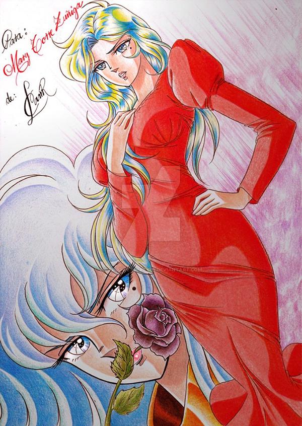 Los arbustos de rosas, los rosales, son a menudo utilizados por los propietarios de viviendas y paisajistas con el fin de proteger las casas, las espinas puntiagudas de muchas especies de rosas evitan que personas no autorizadas entren en las propiedades privadas. Quizás de ese paisaje característico de los rosales Kurumada imaginó utilizarlo para proteger la entrada principal del templo de Atenea en el Santuario, donde se encuentra el templo del Papa, así como impedir el paso al ejército de los titanes hacia los recintos sagrados de la diosa. El nombre de la aldea Rodorio, en las afueras de Atenas, tal vez viene del griego ‘rhodon, rhoda’, “rosa”, y quería decir "florido con rosas." Fue allí donde Albafica pasó buena parte de su vida protegiendo a la gente con sus rosas. Sobre las regiones del mundo en relación con Afrodita de Piscis, es fácil ver por qué motivo Kurumada designó a Groenlandia como su lugar de entrenamiento. El mar que rodea esta isla, que es la más grande del mundo, es la región pesquera más importante del mundo. Ahora bien, con respecto a Suecia, su país natal, es necesaria una investigación mucho más profunda y paciente para comprender la razón. Para abordar esta cuestión, se debe conocer el arte tradicional del "lenguaje de las flores" (fue un medio de comunicación en la época victoriana, en donde variadas flores y arreglos florales se usaban para enviar mensajes codificados, sirviendo a sujetos para expresar sentimientos que de otro modo nunca se podrían hablar). El rey Carlos XII trajo el arte de la floriografía, el lenguaje de las flores, de Persia a Suecia (lugar de nacimiento de Afrodita y el primer país occidental que la adoptó) en el siglo XVIII, desde allí la costumbre se extiende por Europa, con la traducción del sueco primero al inglés (cuando la floriografía fue adoptada por la nobleza de Inglaterra) y luego a otros idiomas. La floriografía más estudiada fue la de las rosas, la roseografía. Ver artículo "El lenguaje de las rosas" Fanarts de Trident (Bélgica) Simbolismo de los colores de las rosas Rojo: amor, pasión, un agradecimiento,