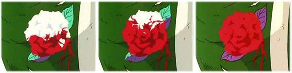 Fanart de Lunaatena (Italia) En el manga precuela Saint Seiya ~ The Lost Canvas Albafica utiliza una Bloody Rose para matar a Minos, pero la principal causa de muerte del Juez es la sangre envenenada de Albafica, cuya rosa había sido impregnada. En esta ocasión, vemos que la Bloody Rose puede perforar un Surplis. Él también utiliza las Bloody Roses de una manera inédita, disponiendo un cierto número entre el lugar de su confrontación con Minos y el pueblo de Rodorio. Minos envía a sus espectros a destruir la aldea, pero estos son eliminados en el camino por las Bloody Roses que los toman automáticamente como objetivo. No se puede saber si esas rosas habrían atacado a cualquiera o sólo a los Specters. En Saint Seiya ~ Next Dimension Cardinale de Piscis logra perforar la Cloth de oro que lleva Shijima de Virgo con su Bloody Rose. En la mitología las rosas eran blancas en la antigüedad griega, se volvieron rojas el día en que la diosa Afrodita, que corría tras su amante herido de muerte, se pinchó con una de sus espinas. La sangre de la diosa coloreó los pétalos de la flor.