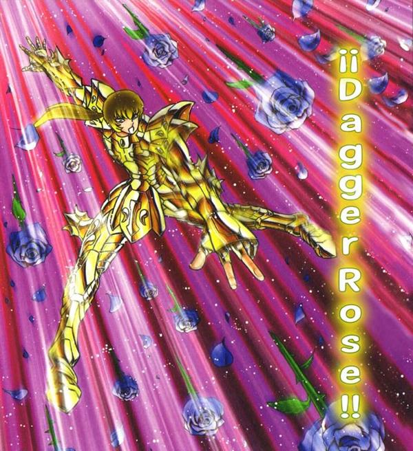(ダガー・ローズ Dagā Rōzu) El Gold Saint dispara un grupo de rosas oscuras (que varían del color negro / azul / morado / violeta según las viñetas) como proyectiles hacia su oponente, estas tienen las mismas características que dagas / puñales afilados y se clavan profundamente en varias partes del cuerpo de la víctima. Estas rosas son incluso capaces de dañar y perforar fácilmente un Gold Cloth.