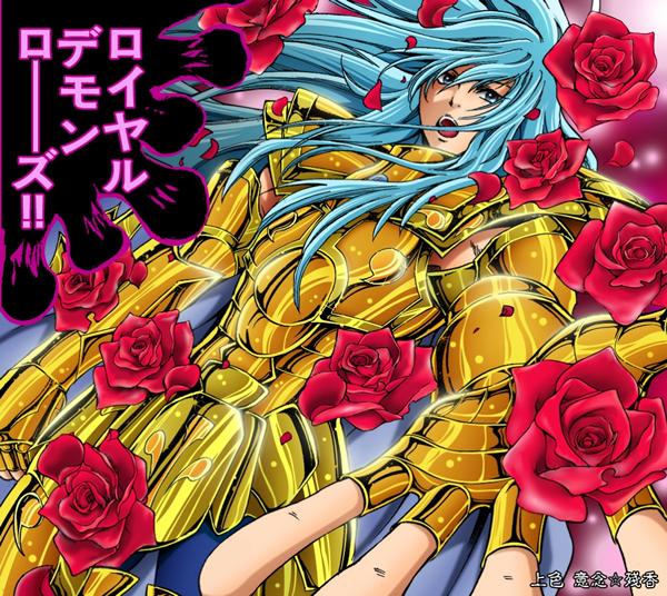 técnica que utiliza accesorios de cloth según el Cosmo Special Rosa Demoníaca (o diabólica) Real: el origen de su toxicidad aún no se ha explicado (por lo general, los frutos de las rosas, en especial el de la rosa mosqueta, son venenosas, pero nada se dice sobre las espinas y el aroma), el término "real" se refiere a la "realeza", tal vez recordando al rey Carlos XII de Suecia. Es la rosa roja que priva de la vida sin sufrimiento. El Gold Saint la lanza contra su oponente, con el fin de matarlo lentamente a través del cruel veneno de las flores o para inmovilizarlo. Aphrodite utiliza estas rosas venenosas también sobre las escalinatas que conducen a las habitaciones del Sumo Sacerdote, con el fin de tender una trampa para los invasores. Afrodita mencionó que estas rosas fueron usadas para proteger palacios en épocas antiguas (de ahí el nombre). E¡El Saint de Piscis manipula y puede usar rosas rojas envenenadas como proyectiles contra su oponente. La diferencia radical que tiene con las rosas comunes de color rojo es su veneno rápido y letal que contienen sus espinas y polen que eliminan al adversario en pocos segundos y sin causar dolor. Cuando la víctima es cortada por las espinas de las rosas o inhala su fragancia del polen, es envenenada mortalmente, perdiendo lentamente el uso de sus cinco sentidos, causando así un debilitamiento de estos, una pérdida de conciencia y combatividad, cayendo progresivamente en un dulce sueño profundo con aroma de muerte, deja de sentir dolor en una agradable sensación de aroma dulce, hasta deja de respirar y morir en última instancia, una muerte elegante e indolora. A pesar de que el rival o no rival recibe esta técnica, su cuerpo no toma dolor alguno, simplemente se va paralizando perdiendo de a poco los cinco sentidos. Se dice que todos los santos de piscis en su entrenamiento, desarrolla inmunidad frente a las rosas. Pero como consecuencia su sangre también se vuelve letal frente a otras personas. Por lo cual estos Santos no suelen relacionarse con nadie. Las rosas rojas también pueden crear una densa niebla de color rojo para cubrir toda el área de combate y ocultar su posición. Esta técnica, entre las numerosas técnicas atesoradas por los Saints, puede ser considerada como la más espléndida. Afrodita guarda la última casa de los 12 templos del Zodiaco, justo antes del palacio del Pontífice. El camino que conduce a la habitación del Papa está lleno de Royal Demon Roses, si alguien las huele, poco a poco perderá el uso de sus cinco sentidos y caerá en un dulce aroma de muerte.