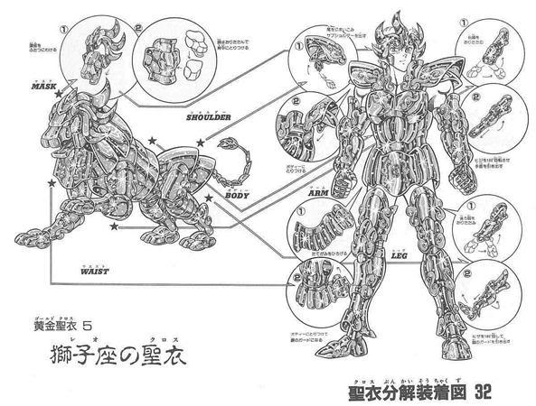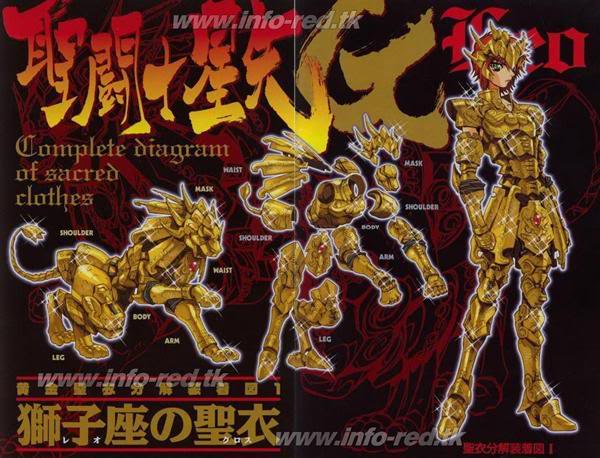 diseño de la armadura de Leo varía ligeramente entre manga y anime: se