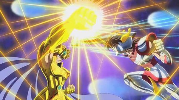 Seiya : “para salvarme de la muerte y que continuara la batalla.” Aioria : “Cassios, te juro sobre mi armadura que