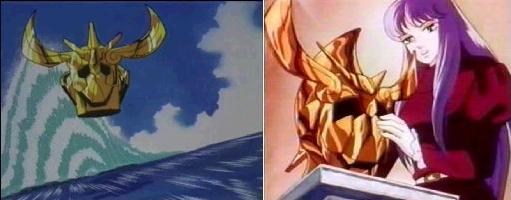 La armadura de Saga está directamente inspirada en el dios Janus. Este
