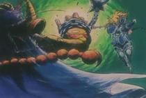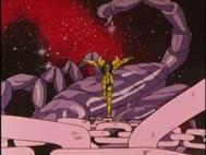 pequeña escena donde es derrotado por Milo y Afrodita. A pesar de que