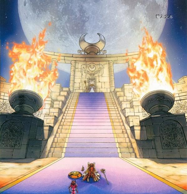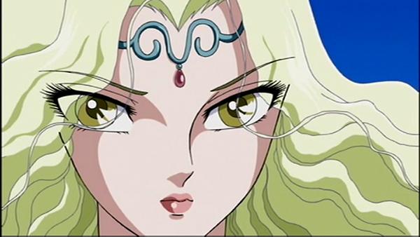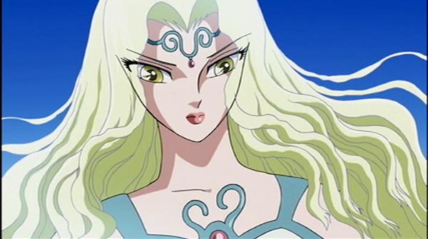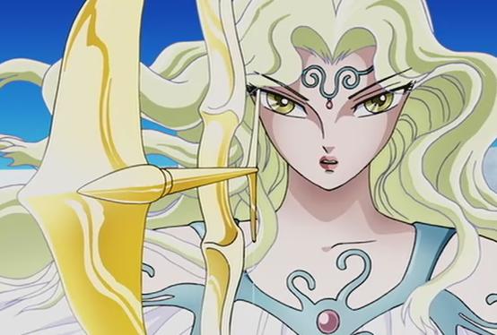 Su aparición es elegante, ya que lo hace mediante una linda Luna brillante como fondo. Llega a la Tierra con la idea de ordenarle a su hermana Atenea que le ceda el trono de la Tierra, al mismo tiempo que eliminará a los humanos que se atrevieron a levantar su puño contra los dioses. Atenea accede a la petición de su hermana mayor entregándole su báculo y con él, el control del planeta Tierra, pero con la condición de que perdone a las almas de sus caballeros.