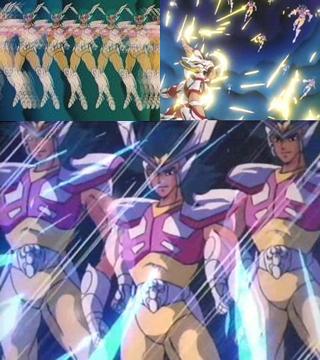 Según el Saint Seiya Taizen y el Cosmo Special, Asterion consigue formar una multitud de prismas en el aire que reflejan nítidamente su imagen, usando para ello telequinesis, formando una gran cantidad de dobles de si mismo, para confundir y burlarse del enemigo, desorientando así a su oponente mientras ejecuta un ataque múltiple. Asterion y sus dobles atacan simultáneamente, mediante patadas en salto que conectan infinitas veces en el oponente en un segundo. El nombre del ataque está quizás vinculado al lugar de entrenamiento de Asterion, el monte Brocken, punto culminante del macizo Harz en Alemania (no en Austria como se dice por error en el manga). Según la tradición, sobre esta montaña se reunían brujas y fantasmas en un aquelarre durante la Noche de Walpurgis, entre el 30 de abril y el 1 de mayo, fiesta que simboliza el final del invierno y que continua celebrándose en algunos países nórdicos, como Suecia o Finlandia, y eslavos, como Rumanía o Chequia. El ataque probablemente también haga alusión a una importante jauría de perros de caza rodeando a su víctima. HABILIDADES ESPECIALES : Como Silver Saint, su velocidad se sitúa normalmente entre Mach 2 y Mach 5, y su Silver Cloth puede resistir un frío descendiente hasta -200º Celsius antes de romperse. El hecho de que el Million Ghosts Attack sea mencionado como una técnica ejecutada a Mach 2 deja suponer que o bien sea la velocidad propia de esta técnica o bien la velocidad general de Asterion, hecho que permitiría clasificarlo entre los Silver Saints más lentos, pues se supone que estos pueden alcanzar velocidades comprendidas entre Mach 2 y Mach 5. Asterion posee la capacidad extraordinaria de leer la mente y corazón de las personas, para prevenir ataques o movimientos de sus adversarios, así se anticipa logrando contrarrestarlos, también puede averiguar y obtener toda la información que necesita de su rival. Es capaz de saber lo que su oponente está pensando en cada instante, pero no sabemos si es capaz de indagar en la memoria de su víctima, el mejor método para contrarestar esta habilidad es hacer el vacío en la mente, como hace Marin para derrotarlo. Asterion no Satori. アステリオンのサトリ (Asuterion no Satori) “El Satori de Asterión” o "Método de Satori". Este término puede hacer referencia a dos conceptos del budismo, al Bodhi o al Satori propiamente dicho. Satori. 覚り (1) Comprensión, Entendimiento. (2) En budismo, Iluminación. También llamado en occidente como Satori y en chino como Wu. Esta técnica no está listada como tal en las fichas oficiales de Asterion (manga, Cosmo Special, Taizen), pero el Cosmo Special y el Saint Seiya Taizen la recogen con esta apelación en su glosario general de términos/técnicas, mientras que el Jump Gold Selection 1 dedicado a la teleserie lo denomina "Dokushin Jutsu". Satori no Hō Doku Shi Jiutsu. 悟りの法 讀心術 (さとりのほうどくしんじゅつ) Dharma/Acto de leer la mente del Satori. Según el Taizen "método de Satori". Es la técnica que emplea Asterión para poder ver todo lo que piensa su rival. (método de adivinación según el manga) Dokushinjutsu. 読心術 (どくしんじゅつ) “El Arte de Leer la Mente”. Nombre que recibió en el anime el “Satori” del manga de Asterión. Según el Gold Jump 1 "Técnica de lectura en los pensamientos" (arte de leer el espíritu según el anime)