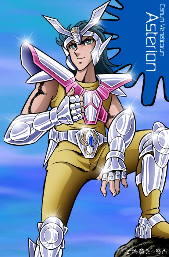 Fanart de Jerome Alquie (Francia) PERFIL PSICOLÓGICO : Como la mayoría de Silver Saints, es muy probable que Asterion piense realmente que sigue la voluntad de Atenea a través del Pontífice. Asterion es enviado en misión para castigar y eliminar a los Bronze Saints rebeldes, por su participación el torneo Galaxian Wars, ya que utilizaron sus Cloths para fines personales,. Debido a la intervención de Mu de Aries, Asterión mató a un Black Saint en su lugar. Pensando que habían completado su misión, el grupo de Silver Saints se retiraró, pero regresaron más tarde debido a la demora de Misty y Babel.
