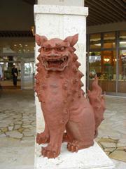 Según la leyenda, un mensajero había regresado de China y trajo consigo una estatuilla de shisa atada a un collar como un regalo para el rey, que había apreciado el presente, y lo llevaba bajo su ropa. Más tarde, un dragón de los mares comenzó a aterrorizar a la población Madanbashi. Siguiendo el consejo de un oráculo, el rey, que pasaba por el pueblo, levantó la figura del shisa, sonó un estruendo enorme que produjo un deslizamiento de tierra y una enorme roca cayó sobre la cola del dragón marino, que fue inmobilizado y finalmente murió. El tema de los leones shisa proviene de los leones guardianes chinos.