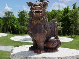 occidentales La referencia de leones guardianes como perros en las culturas occidentales puede ser debido a su referencia japonesa como "Perros de Corea" (狛 犬 • 高麗 犬) debido a su transmisión desde China a través de Corea hasta Japón. También puede ser debido a la identificación errónea de las figuras de leones guardianes como representación de ciertas razas de perros chinos como el Chow Chow (鬆獅 犬, pinyin: sōngshī quǎn) o Shih Tzu (獅子狗; Pinyin : Shih Tzu (獅子狗; Pinyin: Shīzi Gǒu).