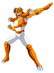 AURA : Aparecía un leon mediano cuando enviaba su Cosmo colectivo a Seiya. En el anime apareció también cuando peleaba contra Jabu en el torneo Galaxian Wars. CONSTELACIÓN : Lionet. ライオネット (Raionetto) “Leoncillo”. El Pequeño León (en latín, Leo Minor, jp. pron: kojishi za) es una de las 88 constelaciones oficiales y fue creada por Johannes Hevelius en el siglo XVII. Como la mayoría de las constelaciones agregadas en ese momento no tiene mitología asociada. En Saint Seiya la constelación no es nombrada por la pronunciación oficial japonesa, sino por una pronunciación a la inglesa ‘Lionnet’ (que no es la pronunciación oficial en inglés, que sería Leo Minor). HERENCIA MITOLÓGICA : El diseño de la armadura pueden parece extraño a un occidental, pero en Asia este tipo de representación de los leones no es inusual. A diferencia de la armadura dorada de Leo, en el caso de este Saint el casco de su cloth es muy similar a los ‘shisa’ japoneses de la isla de Okinawa.