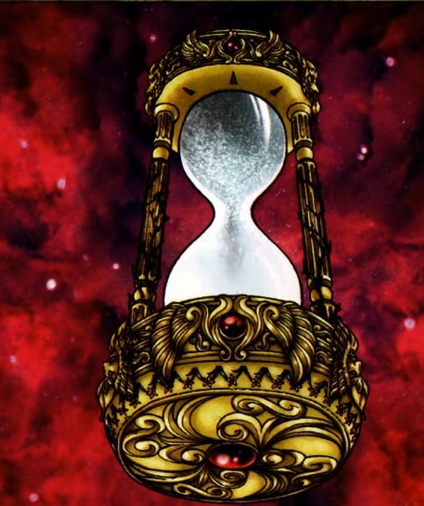 el tiempo del reloj, el tiempo que se mide. No ha mostrado ninguna hasta ahora, aunque evidentemente manipula el tiempo a voluntad y es capaz de enviar a Atenea como bebe a un momento concreto del pasado. HABILIDADES ESPECIALES :