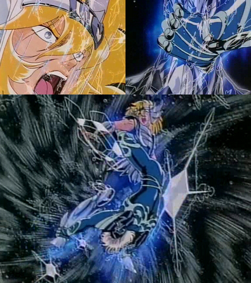 a los de Hyoga). Sorprendentemente, mientras el ataque de Hyoga viene