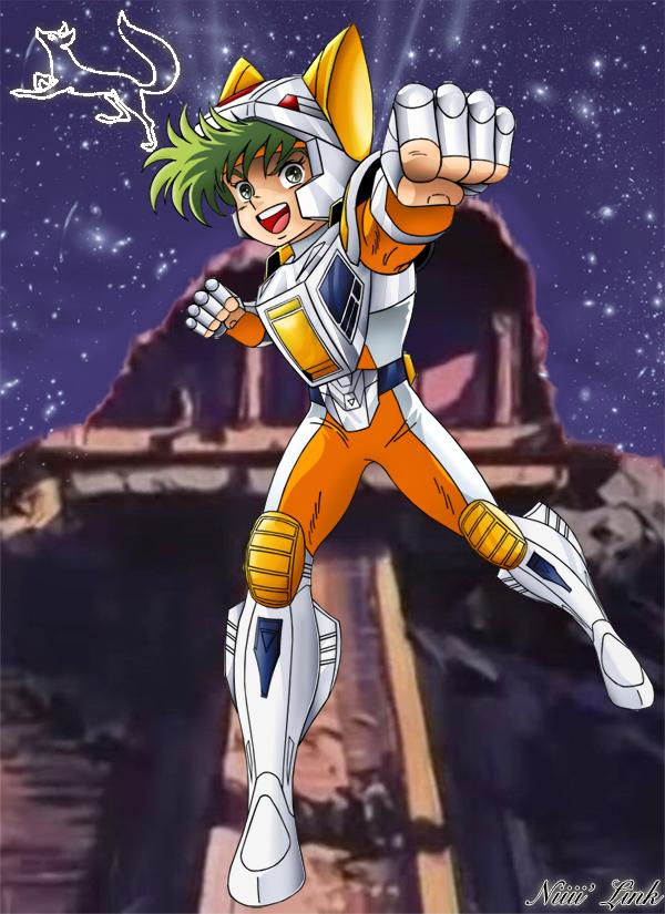 Su armadura está basada en la constelación de Zorro, es completamente mecánica y cibernética, tiene la cualidad que al estar en su forma object (el zorro) tiene ruedas (xD) y sirve como una especie de patin motorizado. Fue creada por el Profesor Asamori bajo las directivas de Mitsumasa Kido y no está viva como las armaduras convencionales de Atenea.