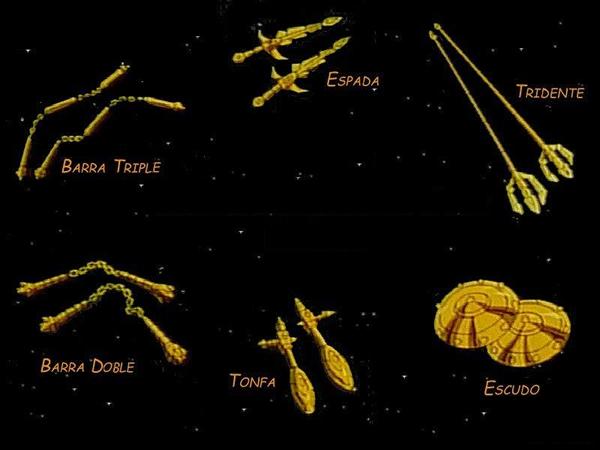 que van divididas en seis tipos -tridente, nunchaku doble, nunchaku triple,