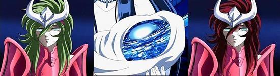 - Greatest Eclipse グレイテストエクリップス (pron. jp: Gureitesuto Ekurippusu) “El Eclipse Máximo” o “El Más Grande de los Eclipses”. Este es el plan de Hades para hundir toda la Tierra en la oscuridad. Lo cubre todo con una espesa neblina negra. Hades reorganiza el alineamiento de los planetas del sistema solar para crear un eclipse eterno sobre la Tierra, deteniendo su rotación alrededor del Sol. Hades planeó eliminar a la humanidad bloqueando el sol durante un mes, impidiendo así la actividad vegetal y convirtiendo el planeta en un gigante bloque de hielo. Hades no Jubaku. ハーデスの呪縛 “La Maldición de Hades”.