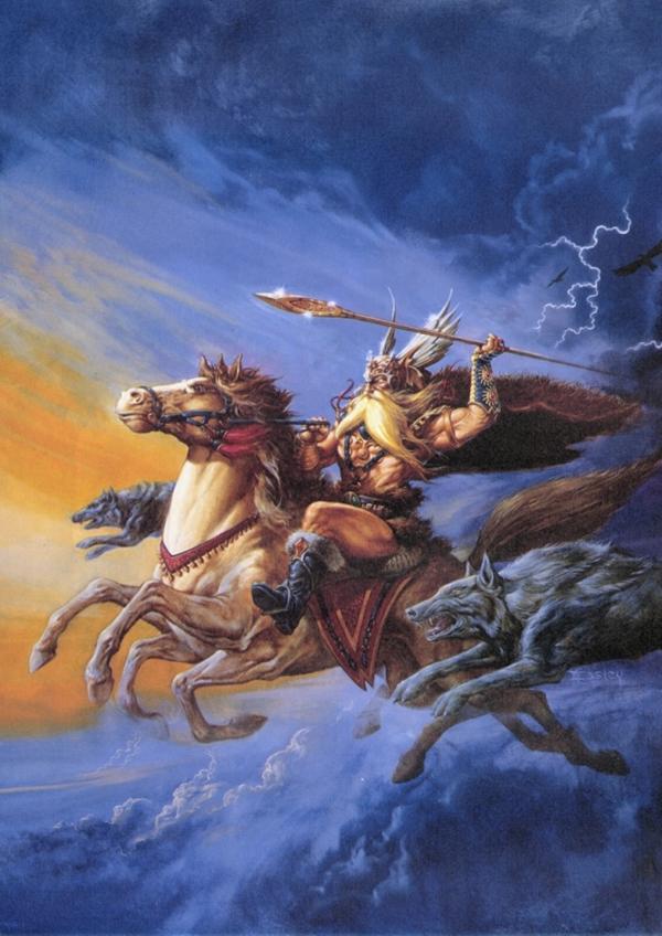 muertos y volver. Odin solía montar a Sleipnir para cazar por los cielos