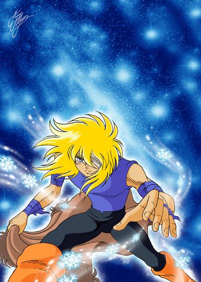 Fanart de Bena (Francia) Es el único protagonista que no posee ninguna técnica relacionada con su constelación. Junto con June, es el único Bronze Saint de la serie clásica y original que nació en un país que no es Japón. Los dos Marina Shōgun a los que se enfrentó Hyōga, representan los océanos gélidos del mundo (Kasa de Lymnades el Antártico y Isaac de Kraken el Ártico).