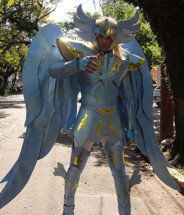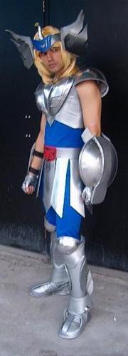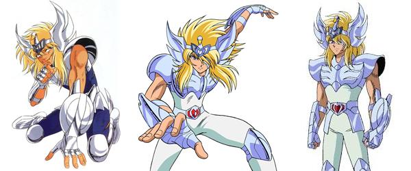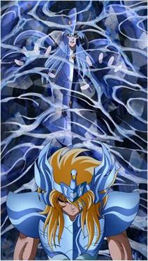 Fanarts de Jerome Alquie (Francia) Durante los períodos de extrema necesidad, los principales cinco Bronze Saints pueden vestir Gold Cloths temporalmente. Eventualmente, Hyôga es merecedor y lo suficientemente poderoso como para usar la Gold Cloth de Acuario. La armadura lo protege en varias ocasiones, una vez en la batalla final contra Poseidón y otra en los Campos Eliseos, no obstante, oficialmente nunca fue nombrado como el titular de esta armadura. La Gold Cloth de Acuario viaja hasta el imperio submarino por voluntad de Camus para ayudar a Hyôga a derrotar a Poseidón y a derrumbar el Pilar Central, y luego hasta los Campos Elíseos con ayuda del dios Poseidón, para socorrer a Hyôga en su enfrentamiento contra el dios Thanatos. Sin embargo, la armadura es completamente destruida por Thanatos de un solo golpe.