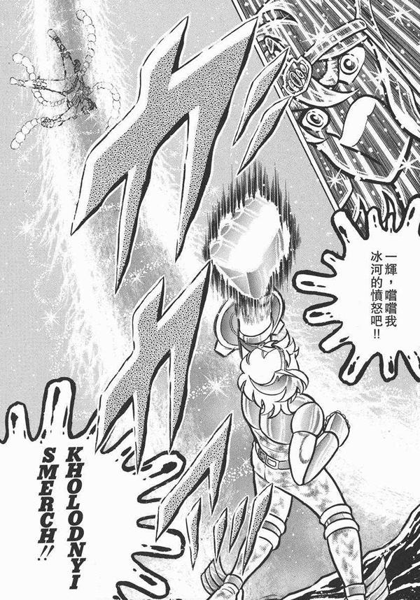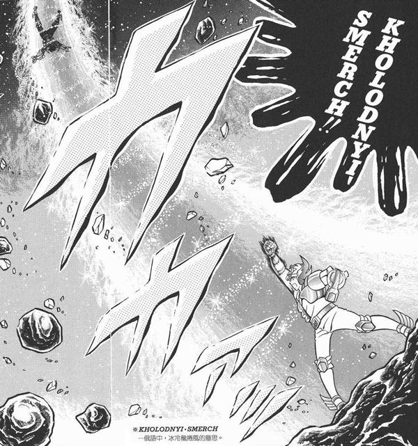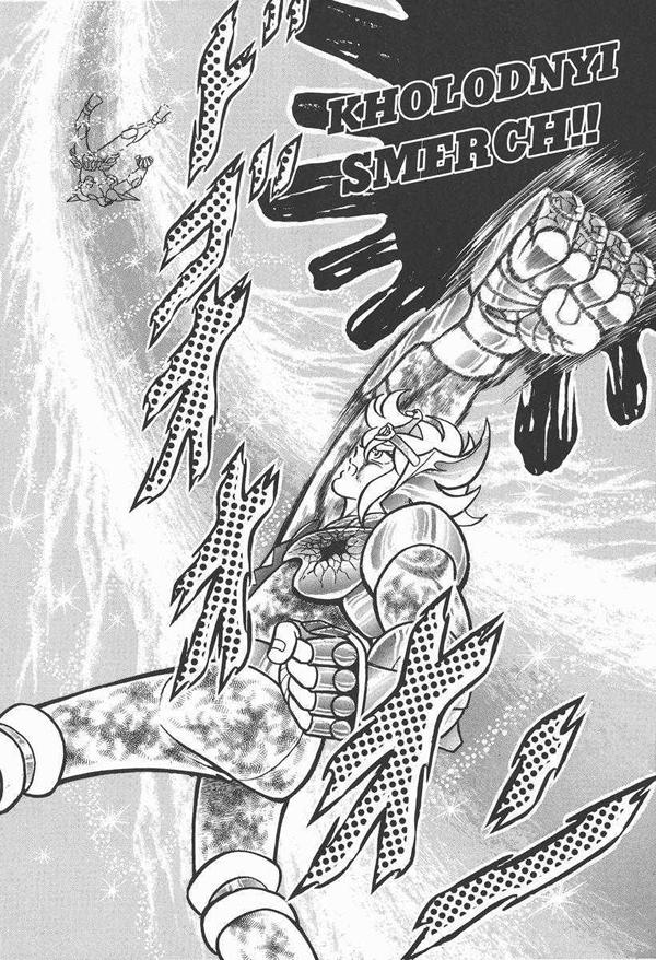 técnica de hielo según el Cosmo Special Es una técnica más poderosa que el Diamond Dust, con la que Hyoga libera contra el oponente una fuerte corriente de aire helado, juntando las manos detrás de la cabeza y luego llevándolas hacia delante varias veces. En el manga se revela que la técnica de congelación Kholodny Smerch es una técnica de congelación "dinámica" es por esta razón que es una técnica mucho mejor que el Diamond Dust. En el manga original, el ataque más fuerte de Hyoga es el "Kholodnyi Smerch", una técnica que captura su cosmos en un tornado, el cual se desata a través de un golpe tipo gancho. En el anime, este movimiento es reemplazado por el "Aurora Thunder Attack", un movimiento que es, en esencia, una variante más potente del "Diamond Dust". Para ejecutar el "Aurora Thunder Attack" Hyoga coloca las manos juntas y expulsa nieve y hielo hacia el oponente. Existen divergencias en cuanto al nombre original del ataque, su ortografía así como su significado, los katakana que se usan para escribir Holodni Smerch vienen del ruso y significan "torbellino o tornado de hielo". En el doblaje inglés conserva el mismo nombre. En el doblaje latinoamericano, según el episodio, se lo llama “Rayo de aurora” o “Relámpago de aurora”. En la segunda película se lo llama “Aurora boreal” tal cual la técnica de Isaac. Contrariamente al Diamond Dust, que tiene por efecto congelar al adversario y le permite atacar de lejos, mediante el Kholodnyi Smerch Hyôga crea un poderoso torbellino de hielo y aire congelado que termina en un golpe ascendente cuya violencia arrastra lejos al oponente. - Holodnyj Smerč. Холодный Смерч (Cirílico) / ホーロドニースメルチ (kana) (Hōrodonī sumeruchi) “Tornado Frío” o “Tromba Gélida”. Los japonés cuando aclaran el significado del término ruso utilizan los siguentes kanas 冷たい竜巻 (Tsumetai Tatsumaki) Literalmente “Tornado Frío”. Холодный= Frío, glacial, fresco, congelado