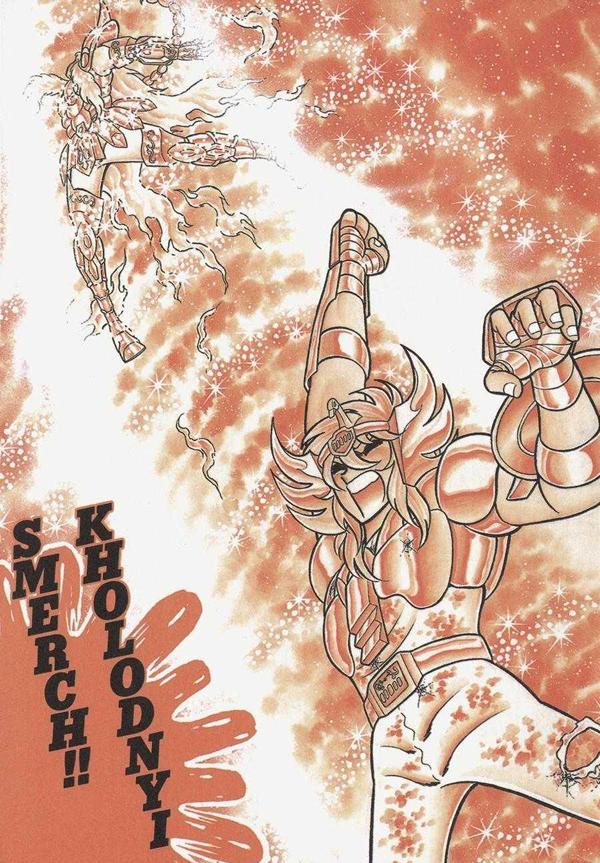 Youtube - Canal Saint Seiya Next Dimension Fan Group Hyoga es el único personaje al que Masami Kurumada dedicó en su manga una narración breve entera. Esta historia se publicó / agregó en el volumen / tomo 13 y se titula “Koori no Kuni no Natassia Hen” (capítulo de Natassia, de la tierra del hielo). Hyoga regresa a Siberia y debe combatir a los Guerreros Azules de Sinigrado. Aunque no fue incluida en la adaptación del anime, inspiró la Asgard Hen, no-canónica y exclusiva del anime sobre Asgard, y la segunda película: Kamigami no Atsuki Tatakai, que incluye elementos tomados directamente de la breve narración de Kurumada, con algunas modificaciones. Koori no Kuni no Natascha Hen. 氷の国のナターシャ編 “El Capítulo de Natascha la del País Helado”. Hyōga retorna a Siberia Oriental, y se encuentra con los Guerreros azules, quienes comandados por Alexer, tienen planeado asesinar al maestro de Sinigrado, Piotr, para así iniciar la conquista de las tierras del sur. Alexer solicita a Hyōga que se les una, pero ante la negativa de éste, lo toma prisionero. Hyōga conoce a Natascha, hija del maestro Piotr y hermana de Alexer. Debido al sacrificio de ella, Alexer finalmente desiste de la lucha.
