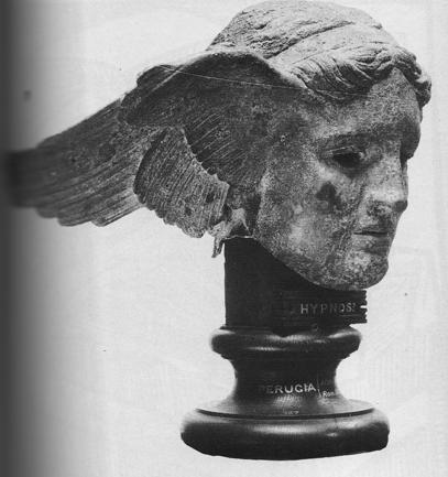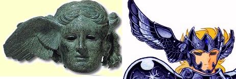 El Muro de las Lamentaciones (el de los Infiernos) no es un simple montaje de ladrillos, también tiene decoraciones, en particular dos caras de perfil cuya oreja es sustituida por un ala, parecen representar a los dos querubines del Arca de la Alianza que se miraban el uno al otro. Así se representaban a menudo a los gemelos Hypnos, dios del sueño, y Thanatos, dios de la muerte. Vean por ejemplo esta cabeza de bronce que representa a Hypnos, expuesta en el Museo Británico de Londres. Se trata de la última parte de una estatua romana (350 a.C.), encontrada cerca de Perugia, en Italia, y copia de una de las estatuas griegas más antiguas realizada por Escopas. Así el Muro de las Lamentaciones nos da la primera pista sobre su naturaleza: sólo los dioses pueden cruzarlos y los gemelos divinos los esperan del otro lado. Como Masami Kurumada utiliza la técnica Star System del venerado mangaka Osamu Tezuka (un elenco estable de personajes que juegan un papel diferente o similar en varias obras del autor, a veces con la misma personalidad y a veces con una nueva), el aspecto de Hypnos' es muy similar al diseño que le dio a Hou Lafiene, un personaje de B't X, un manga que Kurumada escribió y dibujó años después de Saint Seiya.