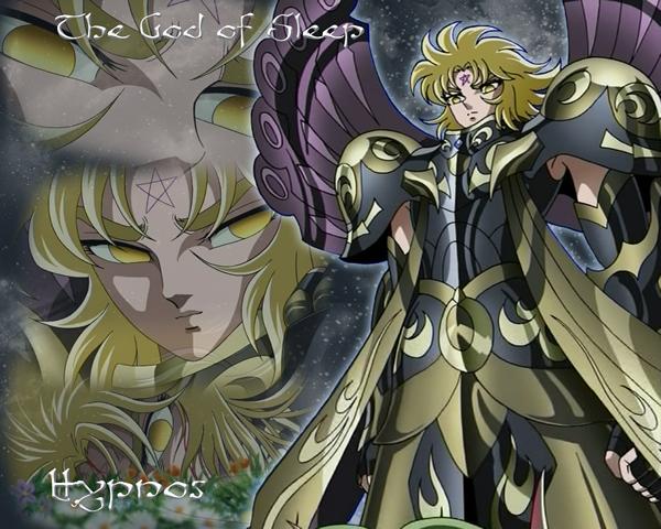 PERFIL PSICOLÓGICO : Hypnos es el dios del sueño y un servidor cercano de Hades Hades, que ha luchado contra los Saints de Atenea desde las edades del mito. Él, junto con su hermano gemelo Thanatos reside en Elysion y comparte las ambiciones de su dios. Hypnos fue más cauteloso que su hermano y se mantuvo fuera del camino de los Bronze Saints de Atenea. Sin embargo, actuó cuando los Saints elevaron su poder y comprobé que podrían ser peligrosos para los mismos dioses, pues él fue testigo del poder de los God Cloths en las edades del mito. En su esfuerzo por detener a Pegasus Seiya, sin embargo, fue interpelado por los otros Bronze Saints que resucitaron con éxito sus God Cloths e hirieron gravemente al dios. Hypnos vivió el tiempo suficiente para sentir el momento en que el verdadero cuerpo de Hades fue despertado, pero sucumbió a sus heridas poco después. Kurumada introdujo a Hypnos en la parte final de la saga de Hades de su manga, específicamente en el volumen 27, y su perfil es similar al de su homólogo de la mitología griega: calmado, calculador y sereno. A diferencia de su hermano Thanatos, que es propenso a perder los estribos y actuar sin tener en cuenta las consecuencias cuando está influenciado por la ira, el Hypnos de Kurumada se mantiene en calma y en control de sí mismo, incluso en las situaciones más críticas. Él es más cauteloso y reflexivo de la estrategia a adoptar y de las consecuencias, sin dejar que la imprudencia o la temeridad le afecten. Él es muy respetuoso de la autoridad de su señor Hades.
