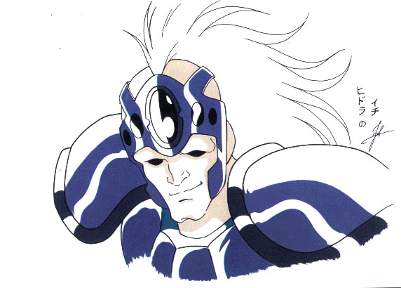 Fanart de Jerome Alquie (Francia) PERFIL PSICOLÓGICO : Ichi es uno de los diez Bronze Saints presentados al principio de la serie y forma parte de los 100 niños enviados a campos de entrenamiento por Mitsumasa Kido. Es un caballero al que se ajusta el adjetivo bocazas. Es el personaje que destaca más por su apariencia física en el grupo inicial de 10 Santos de Bronce. Exhibe una confianza desmesurada, no se da cuenta de la diferencia de poder entre él y Hyoga. Aunque su rol es reducido, va a evolucionar durante la historia. Ichi es un personaje recurrente de Saint Seiya. Pasó el comienzo de la serie como un sádico y pérfido, que profiere extrañas risas al enfrentarse a Hyoga, pero posteriormente se convierte en un personaje más simpático y casi cómico, en particular cuando se lo ve de nuevo en el Santuario haciendo poses diferentes después de derrotar a los guardias que querían atacar a Saori. Como los otros Santos de bronce secundarios Ichi mostró humildad después de su derrota en el torneo Galaxian Wars y luego volvió a entrenar con su maestro. Durante la guerra santa contra Hades, se ocupa de la gestión de la guardia del Santuario. En el volumen 19 del manga, Ichi se muestra bastante supersticioso viendo los espíritus atacar el Santuario, ilustrando así un rasgo característico de los japoneses frente a lo sobrenatural. Durante el capítulo Hades reaparece más bien como un poco cobarde cuando se enfrenta con diversos espectros, y también muy sentimental, llorando sobre los ideales y el valor de Seiya y los demás, o también por el sacrificio de Atenea. Estas características se acentuarán en la OAV y la Película 5. Finalmente, Ichi se muestra muy devoto hacia Atenea y es respetuoso hacia sus camaradas caballeros de bronce, mucho más fuertes que él, como Seiya. Esto lo demuestra protegiendo a la hermana de este último, arriesgando su propia vida. Según el Taizen, Ichi tiene un temperamento nihilista. PARTICULARIDADES
