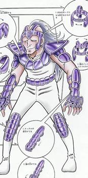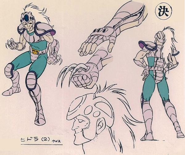Cloth 聖衣 I Sus colores son prácticamente los mismos tanto en manga como anime. Sólo varía el cabello del Saint, mientras en el manga Kurumada le daba color negro y en el anime es blanco. La ropa bajo su Cloth es blanca en el manga y morada en el anime. La piel es un tanto blancuzca en el manga. Las gemas en la diadema son del mismo color que la Cloth en el manga, y son verdes en el anime. ACCESORIOS : Hydra no Dokuga. ヒドラの毒牙 “Los Colmillos Venenosos de la Hidra”. Es un accesorio oculto que tiene la Bronze Cloth de la Hidra. La armadura está equipada al nivel de cada puño y cada rodilla de afiladas garras retráctiles, con la facultad de regenerarse muy rápidamente y la propiedad de volver a creer cuantas veces sea necesario, estas incluyen un fuerte veneno que matará lentamente al enemigo, a imagen de las cabezas de la Hidra de la mitología. Hydra no Kiba. ヒドラの牙 (Hidora no Kiba) “El Colmillo de la Hidra”. Nombre de la técnica que aplica los colmillos venenosos en el anime. AURA : Aparecía la Hydra de Lerna en contadas ocasiones. CONSTELACIÓN : Hydra. ヒドラ(kana) / Ύδρα (griego) (Hidora (romaji) / Hydra) “Hidra” o “Serpiente Acuática” Hydra (en latín: Hydra) es una de las 88 constelaciones oficiales y ya formaba parte de las 48 constelaciones antiguas definidas por Ptolomeo en su Almagesto. Es la mayor de las constelaciones, aunque no contiene muchas estrellas brillantes. En japonés, los kanji usados para representar el nombre de esta constelación, literalmente, significan “serpiente de mar”, esto puede explicar porque el aura de Ichi en la preparación de su Mellow Poison frente a Hyoga parece una serpiente normal en vez de una serpiente con muchas cabezas, y también porque su cloth en forma object parece una serpiente normal. La constelación de "Hydrus", también significa serpiente de agua.