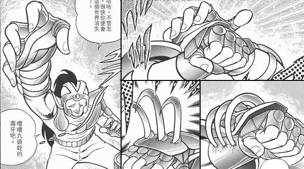 Una vez clavadas, las garras se desenganchan y permanecen insertadas en el cuerpo de su víctima, pero eso no representa un problema para él porque al igual que la hidra mitológica estas vuelven a crecer instantáneamente y cuantas veces sea necesario. Ichi nunca pronuncia el nombre de este ataque cuando lo usa. Naturaleza: Física. Clasificación del Cosmo Special: Técnica que utiliza accesorios de Cloth.