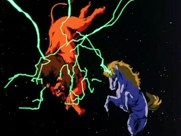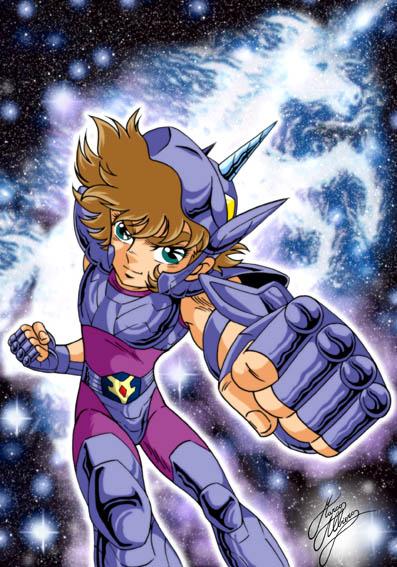 AURA : Aparecía la figura de un Unicornio, casi siempre cuando enviaba su Cosmo colectivo a Seiya. En el anime aparecía de forma un poco más frecuente. CONSTELACIÓN : Ikkakujūza. 一角獣座 (いっかくじゅうざ) “Constelación de Monoceros” o “Constelación del Unicornio”. El Unicornio (en griego: Monoceros) es una de las 88 constelaciones oficiales y fue creada por Petrus Plancius el siglo XVI, aunque de acuerdo con Joseph Scaliger ya aparecía en los antiguos globos celestes persas. En Saint Seiya la constelación no es nombrada por la pronunciación japonesa oficial, sino por la pronunciación inglesa unicorn (que tampoco es la pronunciación oficial en inglés, siendo esta última Monoceros). En la escritura japonesa significa literalmente animal de un cuerno. La constelación del unicornio es “Monoceros”, unicornio en griego, fue creada por el astrónomo y teólogo holandés Petrus Plancius en 1613 y registrada por el astrónomo alemán Jakob Bartsch en 1624. No obstante, Heinrich Wilhelm Olbers y Ludwig Ideler aseguran que la constelación es mucho más antigua, figurando como "el segundo caballo al sur de los Gemelos y el Cangrejo" en escritos de 1564, y Joseph Scaliger reseña haberla encontrado en una esfera de la antigua Persia. HERENCIA MITOLÓGICA : Unicorn / Monoceros.