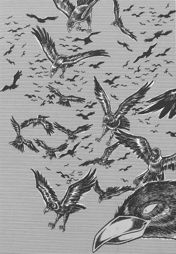 podía controlar a los cuervos mediante silbidos como sus propias extremidades.