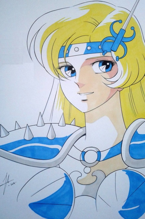 Fanart de Jerome Alquie (Francia) Lo que es realmente una pena es que este personaje no sea objeto de un desarrollo suplementario. Entrando en la categoría de "personajes olvidados sin razón", ella se lleva la palma. Se puede imaginar que volvió a la isla de Andrómeda una vez curada, pero eso es un poco ligero como comportamiento dado que hay una guerra santa en curso y que habría debido intervenir en toda lógica. ¿Quizás ella tiene una obligación de renunciar a su estatuto de caballero después de haber mostrado su cara a Shun? No, pues entonces Shaina habría hecho lo mismo... ¿Shun espera el final de los combates para ir a buscarla? misterio... Efectivamente, June fue dejada de lado por Kurumada, pero siguieron la misma suerte los otros bronces, cuya carrera en la historia tampoco es la más envidiable (Ok aparecen un poco más pero su papel no es extraordinario a pesar de todo) así que en este sentido ella forma parte de los caballeros de bronce olvidados, ya que Kurumada se concentró sobre Seiya & cia. Lo que realmente nos afecta a los fans es el hecho de que sea además una mujer Saint marginada, tónica general en Saint Seiya. A pesar de ser una de las chicas más lindas, junto con Athena y Shaina, June se esfumó por completo del manga y de la mente de Kurumada xD. Da la impresión que ya no volveremos a saber de ella... tal vez le pareció que el mundo de los Saints de Athena es una locura después de saber cómo murió su maestro Cepheus Daidalos y que el Santuario estaba usurpado por el Pontífice falso. Quizá no quiso tener nada que ver en todo ese baño de sangre que vendría. Podemos suponer que posteriormente, con la llegada de los Specters en la saga de Hades, June no atendió la llamada del Santuario en la saga de Hades. Seria de verdad genial que Kurumada la trajera de vuelta en Next Dimension. Otra posibilidad sobre su ausencia es que quizás su vuelta pueda generar algún problema de copyright, que es lo que evita que aparezca, quizás el diseño visual no es 100% de Kurumada, por eso no le pertenece del todo y no la puede usar. De todos modos, ha habido bastante merchandising de ella, como el Cloth Myth, así que el asunto de copyright es más que dudoso. Lo más plausible es simplemente que Kurumada ya la dejó en el olvido, de hecho no es a la única a la que ha dejado tirada, Alone lleva casi diez años sin salir...
