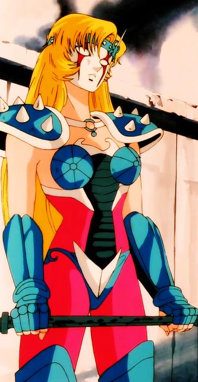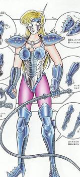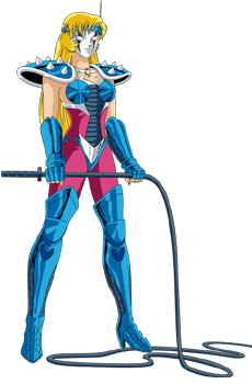 No sabemos si es hija de Mitsumasa ni quien la envió a entrenarse a la isla de Andrómeda, Kurumada nunca dio datos al respecto, juzgando por su nacionalidad, no lo es seguramente. Ella es etíope y la isla de Andromeda se situa en Etiopía, así que ella era una autóctona local. Además, es uno de esos raros casos en que Kurumada pone atención a lo que hace, si hubiera sido hija de Mitsumasa, ella y Shun serían unos incestuosos ... tipo Luke y Leia de Star Wars, que no sabían que eran hermanos ^^. Colorización de X-Color (China) PARTICULARIDADES