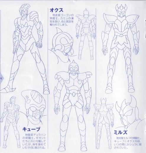 Fanart de Jerome Alquie (Francia) PERFIL PSICOLÓGICO : Apenas nos damos cuenta de la presencia de Mills antes de que Camus no tome su lugar bajo su surplis. Su carácter no ha sido desarrollado para nada. Cube, Mills y Ox aparecen sin ser nombrados en el capítulo del Junikyu-Hen como miembros del grupo de espectros enviados Radamanthys al Santuario para vigilar a los Saints renegados. Atraviesan la casa de Cáncer, pero los tres son asesinados antes de llegar a la casa de Leo. Cube sucumbió a los golpes de Saga, Ox es partido por Shura y Mills congelado por Camus. Los 3 antiguos gold saints se apropian de las surplices de sus adversarios respectivos para camuflarse y se mezclan de incógnito en el grupo de Gigant. Estas surplices serán destruidas más tarde por Shaka, que revelará la identidad de los usurpadores. En el manga Mu descubre sus cuerpos mientras que en las OAV Seiya y sus compañeros hacen este macabro hallazgo. En el manga Mu descubre sus cuerpos mientras que en las OAV Seiya y sus compañeros hacen este macabro hallazgo. Mills muere demasiado rápido (y fuera de la pantalla) para que podamos hacernos una idea de él, de todos se pudo ver parcialmente su rostro, tiene el pelo azul claro. PARTICULARIDADES DE LA ARMADURA : Elf no Surplice. エルフのサープリス “El Sapuri de Elfo”. El propietario es Mills. Representa a un Elfo, criatura de los mitos germanicos, bellos hombres y mujeres humanoides inmortales. Camus no se puso este Surplice casualmente, la armadura oculta completamente la identidad de su portador, le permite pasar inadvertido en su camino al Templo de Athena cuando fue resucitado por Hades. Puede sorprender ver a un elfo como Surplis visto que estas criaturas tienen connotaciones positivas en la cultura popular, pero el Surplis puede representar a los dökkálfar, elfos oscuros. El nombre de Mills proviene de la leyenda escandinava suscitada, pero su nacionalidad también hace otra alusión a los duendes de Irlanda (Leprechauns), importados de la leyenda de los elfos. Asimismo, la estrella de la inferioridad puede ser relacionada con el tamaño minúsculo de estos. En la novela Suikoden el personaje de Wang Dingliu está asociado con esta estrella. Fanart de Trident (Bélgica) No