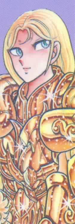 manga posee cabellos largos y rubios al igual que su maestro Shion (Kiki