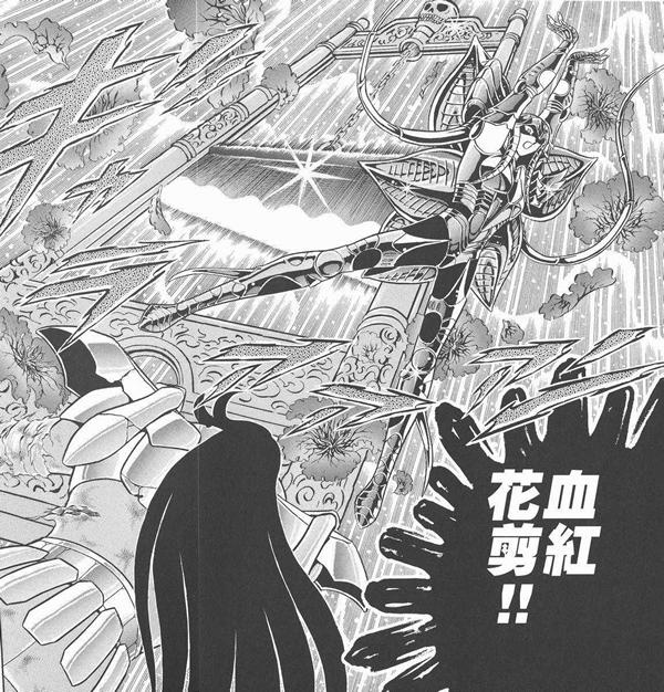 aunque el Specter sólo logró producir un corte leve en el cuello a Shiryu,