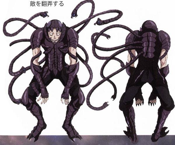 uno de los personajes posee tentáculos que surgen de su vientre y cuyas