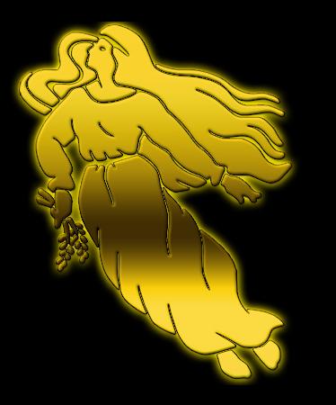 una bella joven con grandes alas en su espalda y que porta una antorcha;