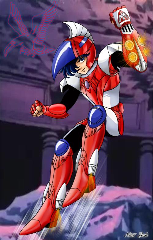 Su armadura está basada en su diseño en la constelación del Tucán, el brazalete izquierdo posee cuatro turbinas adosadas en el antebrazo que operan a modo de escudo capaces de absorber y devolver ataques enemigos y cualquier fuente de energía, como las llamas de Babel o el rayo petrificador del escudo de Algol, incluyendo el Cosmo, es completamente mecánica y cibernética. Fue creada por el Profesor Asamori bajo las directivas de Mitsumasa Kido y no está viva como las armaduras convencionales de Atenea.